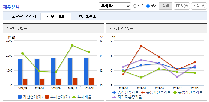 -2024년 3월 전년동기 대비 연결기준 매출액은 14.5% 증가, 영업이익은 14.3% 증가, 당기순이익은 4% 감소. 화장품소재 판매 확대 및 네슬레 브랜드사업 유통확장, 중국사업 운영 효율화(인건비, UT비 등 감소)로 매출액과 영업이익 증가. 신규사업 추진비용 증가로 당기순이익 소폭 감소. 네슬레 브랜드 국내 독점유통 사업을 확장하여 전체매출 비중의 20% 이상으로 확대 계획 중. 2024년 5월(배정일기준) 무상증자 실시함.