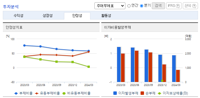 -2024년 3월 전년동기 대비 연결기준 매출액은 31.6% 감소, 영업손실은 97.3% 감소, 당기순이익 흑자전환. 스테인리스 가격이 소폭 상승하고 열연 가격이 상대적으로 하락하는 등 롤마진 개선 영향에 따라 수익성이 개선되어 영업손실 감소함. 세계 각국의 중앙은행이 급격한 물가상승률을 완화시키기 위해 긴축 정책을 시행함에 따라 스테인리스 주요 수요산업 경기 부진으로 이어졌으며 스테인리스 수요 감소로 이어지고 있음.