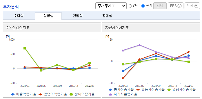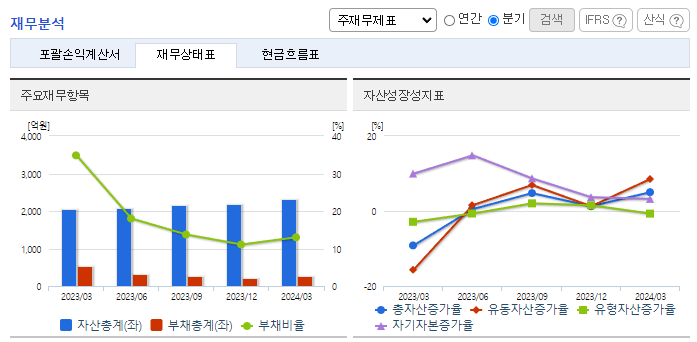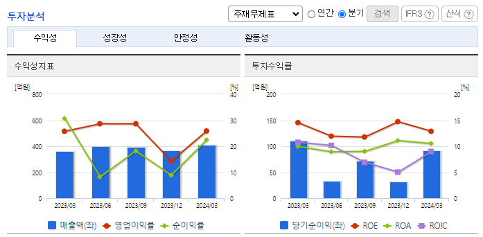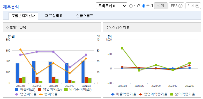 -2024년 3월 전년동기 대비 별도기준 매출액은 14% 증가, 영업이익은 14.4% 증가, 당기순이익은 16.4% 감소. 거래처 확대를 통한 안정적인 매출처 확보로 꾸준한 성장을 보여주고 있음. 비용은 상승하고 있으나 높은 매출로 수익성을 보전하고 있음. 기존의 고분자, 저분자에 더해 기술 난이도가 높은 초저분자 HA원료까지 라인업을 확보함으로써 신규 전략 사업인 점안제 사업에 탄력이 붙을 것으로 기대하고 있음.