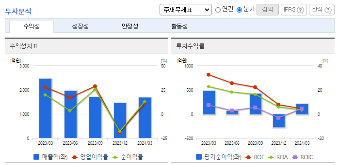 -2024년 1분기 연결기준 매출액은 전년동기 대비 31.4% 감소, 영업이익은 73.2% 감소, 당기순이익은 55.9% 감소. 전사업부문에서 매출이 감소함에 따라 영업이익 또한 감소함. 군산 제2국가산업단지에 대구경 강관공장 시설투자를 통해 기존 중소구경 강관과의 시너지효과가 발생할 수 있을 것으로 예상. 대구경 강관 생산을 통해 성장가능성이 높은 그린에너지 산업의 신규시장을 개척하고자 함.