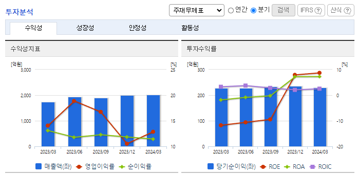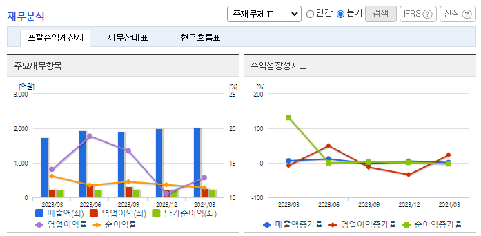 -2024년 3월 전년동기 대비 연결기준 매출액은 16% 증가, 영업이익은 6.1% 증가, 당기순이익은 63.2% 증가. 주된 수입원은 배당금, 경영자문수수료, 브랜드수수료, 임대수익으로 각 회사의 안정적인 수익으로 꾸준히 성장하고 있음. 2023년 12월 신규 편입한 종속회사 휴온스생명과학은 완제 의약품 제조 기업으로 GMP 인증 공장과 자체 허가 의약품을 바탕으로 전문의약품 사업에 시너지를 기대하고 있음.