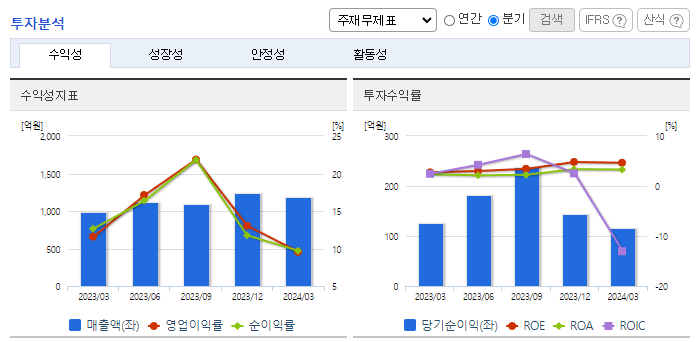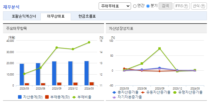 -2024년 3월 전년동기 대비 연결기준 매출액은 19.5% 증가, 영업이익은 1.5% 감소, 당기순이익은 20.8% 감소. 본부임차형 매장 확대에 따른 비용 증가가 겹치며 편의점 영업이익은 16% 감소. 편의점 매출 증가에 따른 밸류체인 선순환으로 종속회사 영업적자는 18억 원 개선됨. 실적개선의 주요인은 동사의 종속회사로 편입된 (주)케이엔더블유 및 그 종속회사 관련 연결 편입효과가 2023년 4분기부터 반영된 점에 기인함.