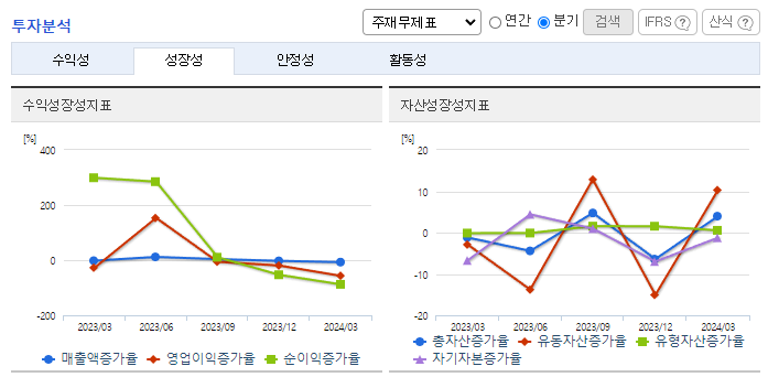 -2024년 3월 전년동기 대비 연결기준 매출액은 4.9% 증가, 영업이익은 16.7% 감소, 당기순이익은 69.9% 감소. B2B 식자재 유통을 진행하는 식자재유통 사업과 단체급식 부문의 푸드서비스 사업에서의 수요 증가로 인해 매출액이 전년대비 소폭 증가함. 경기 침체로 인한 외식 경기 둔화와 계절적 비수기, 전공의 파업 등에 의한 영업일수 감소로 영업이익이 소폭 하락함.