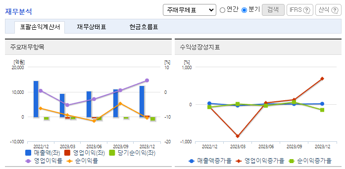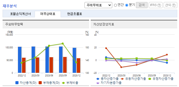 -2023년 12월 전년동기 대비 연결기준 매출액은 8.8% 감소, 영업이익 적자전환, 당기순손실은 163.1% 증가. 미국 작가 및 배우 파업에 따른 미국 제작 자회사 FIFTH SEASON 작품 납품 및 매출 감소 영향으로 무형자산상각비가 전년 대비 3,207억 원 감소함. 재무 레버리지, 금리 수준 등을 감안하여, 비사업 관련 투자자산 매각 등 적극적인 유동화 전략을 지속할 계획임.