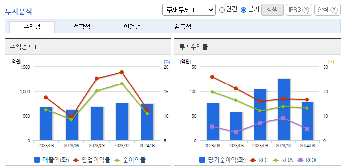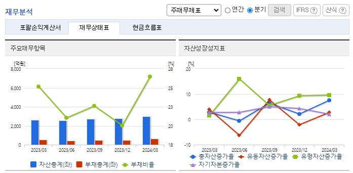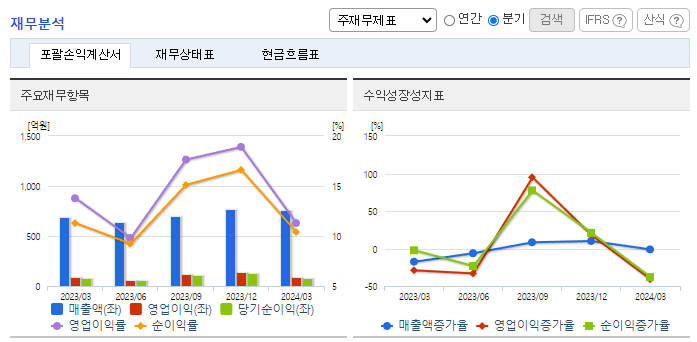 -2024년 3월 전년동기 대비 연결기준 매출액은 10.4% 증가, 영업이익은 9.5% 감소, 당기순이익은 2.5% 증가. 반도체 업황 회복 기대 속에 동사의 2024년 1분기 누적생산현황은 전년동기 대비 약 20% 상승함. 이에 실적이 개선되며 매출은 증가했으나 주요 원재료 가격이 상승하며 영업이익은 소폭 감소함. 차세대·전력반도체 투자 확대로 인한 신규팹 등의 투자 확대가 예상되며 실적에 긍정적인 영향을 줄 것으로 기대됨.