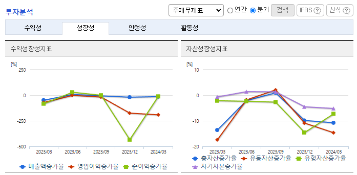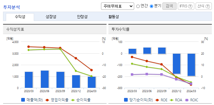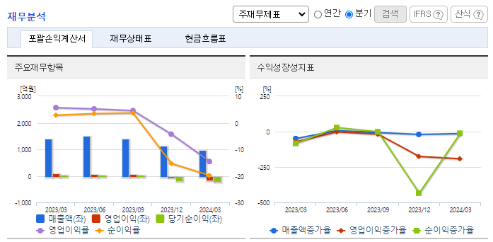 -2024년 3월 전년동기 대비 연결기준 매출액은 30.7% 감소, 영업이익 적자전환, 당기순이익 적자전환. 국내 및 글로벌시장의 모듈 판매 물량 감소 및 판매가 하락으로 매출이 감소하였으며, 중국산 모듈 공급 과잉으로 인한 판매가격 하락으로 영업이익 적자전환함. 유럽 외 시장으로 지역을 확장시키며 신규고객 발굴과 마케팅 강화 노력 중이며, 상업용/중대형 프로젝트 수주 확대 추진 중임.