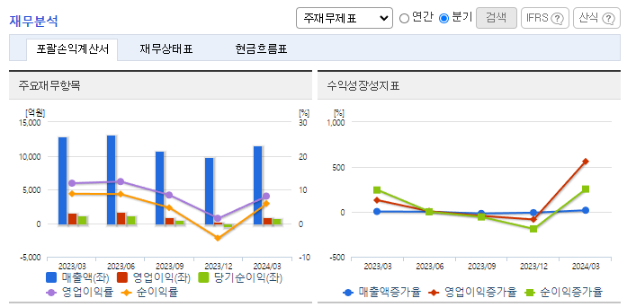 -2023년 12월 전년동기 대비 연결기준 매출액은 2% 감소, 영업이익은 25.8% 증가, 당기순이익은 0.4% 증가. 건설기계 사업부문 매출이 전년 대비 5.9% 줄었지만 엔진사업부문의 매출이 11.9% 늘어나며 건기사업 부진을 상쇄함. 외형 축소에도 원가율 개선으로 영업이익은 늘어남. 기존 기계식 엔진 대체를 위한 전자식 엔진 개발 및 출력 증대 등 내연기관 라인업 최적화로 사업 확대 지속 추진 중.