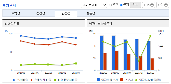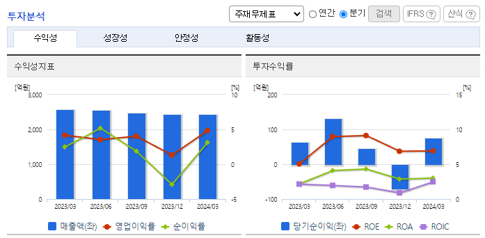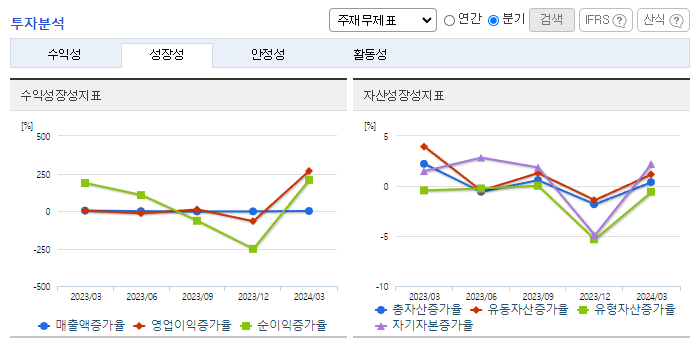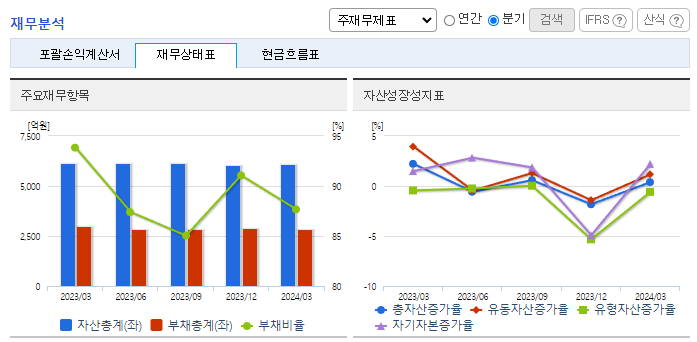 -2024년 3월 전년동기 대비 연결기준 매출액은 5.9% 감소, 영업이익은 10.1% 증가, 당기순이익은 8.4% 증가. 주요 원재료 가격 강보합세 유지에 따른 제품 판매 가격 하락으로 매출은 감소했으나, 원재료 국제시세 상승폭이 판매단가 상승폭을 하회함에 영업이익은 성장세를 유지함. 동사의 주요 원재료는 석유화학 제품으로 국제유가, 환율, 수요공급 균형의 변동에 직접적인 영향을 받는 시장 위험이 있음.