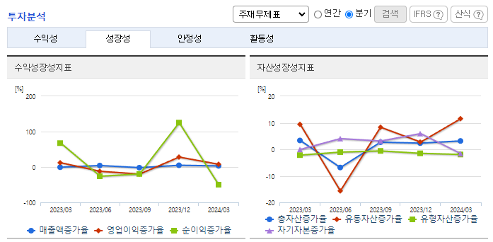-2024년 3월 전년동기 대비 연결기준 매출액은 10.7% 증가, 영업이익은 3% 감소, 당기순이익은 33% 감소. 영양수액 매출 부문이 12.26% 감소했지만, 특수수액 매출 부문이 67.21% 증가하면서 전체 외형 성장을 이끎. 매출원가와 판관비가 12.6%, 21.9% 증가하면서 매출액 상승에도 불구하고 영업이익이 감소함. 글로벌 제약사와 TPN 수출 계약을 진행하며 글로벌 제약회사로 발돋움하고 있음.