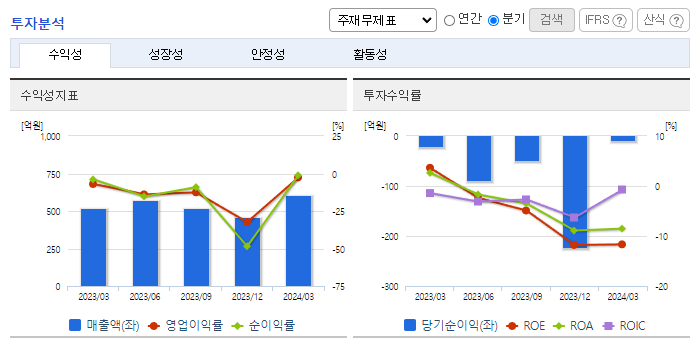 -2024년 3월 전년동기 대비 연결기준 매출액은 17.5% 증가, 영업손실은 56.2% 감소, 당기순손실은 58.8% 감소. 동사는 전년동기대비 국내 대형 제조사향 공급의 증가와 국내 가전 제조사들의 자국 내 전력반도체 조달처 확대에 대한 니즈등으로 매출이 증가하였음. 또한 원가 상승을 고려하여 단가도 오름. 구미공장, 태국공장의 투자 실행으로 반도체 부품의 국산화하여 전자부품 산업의 생산능력 확대 및 기술경쟁력을 강화하고자 함.