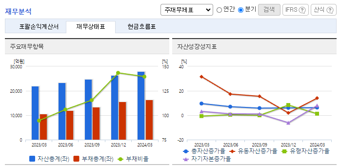 -2024년 3월 전년동기 대비 연결기준 매출액은 7.7% 감소, 영업이익은 61.1% 증가, 당기순이익은 226.1% 증가. 내수가 비교적 큰 폭으로 감소한 여파로 전체 외형 축소된 상황. 반면, 적극적인 판관비 절감 노력을 통해 수익성은 비교적 큰 폭으로 개선된 모습. 내수 업황 둔화를 감안할 때 해외시장 개척을 통한 완성차 수출 물량 확대가 성장의 관건이 될 전망.