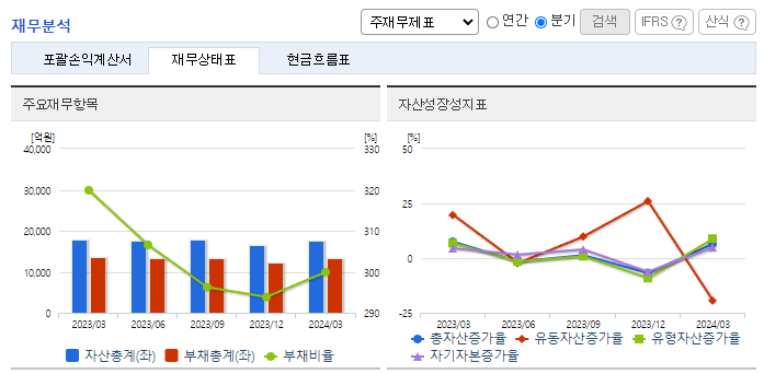 -2024년 3월 전년동기 대비 연결기준 매출액은 3.6% 증가, 영업이익은 8.6% 감소, 당기순이익은 1.7% 감소. 중고선박을 활용한 매출 확대 전략을 통해 올해도 지속적인 성장을 이어갈 것이며, 선대 확장에도 적극적으로 나설 계획임. 2024년 4월 30일 HD현대 계열의 HD HYUNDAI OIL SINGAPORE PTE LTD와 478억 규모의 용선 계약을 체결했고, 이는 작년 매출액 대비 10.12% 규모임.