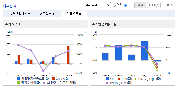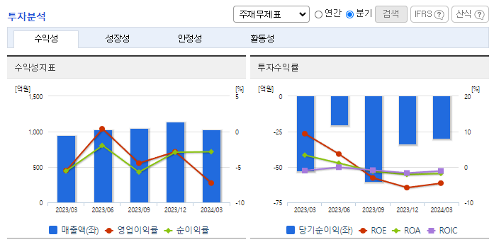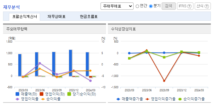 -2024년 3월 전년동기 대비 연결기준 매출액은 8.5% 증가, 영업손실은 43.5% 증가, 당기순손실은 67.8% 감소. 반도체 산업의 회복에 따라 매출이 증가하였으나, 판관비 비중이 상승하여 영업손실 폭이 증가하였음. 이는 지급수수료와 판매보증환급금의 감소 여파 때문임. 동사는 고객과 비즈니스 모델 다각화에 집중하고 있으며, 현재 글로벌 주요 팹리스들과의 협력을 진행하고 있음.