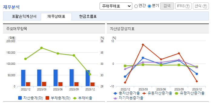-2023년 12월 전년동기 대비 연결기준 매출액은 5.3% 감소, 영업이익은 31.5% 감소, 당기순이익은 39.7% 감소. 음료사업이 견조한 성장세를 이어간 가운데 주력인 화장품과 생활용품 사업이 전년대비 부진하며 전체 외형이 축소됨. 원가율 악화와 인건비 등 비용 증가에 따라 영업이익이 크게 감소함. 2023년 색조 브랜드 역량 강화를 위해 프리미엄 색조 브랜드 힌스(Hince)를 보유한 ㈜비바웨이브 지분 인수 지배력 획득함.