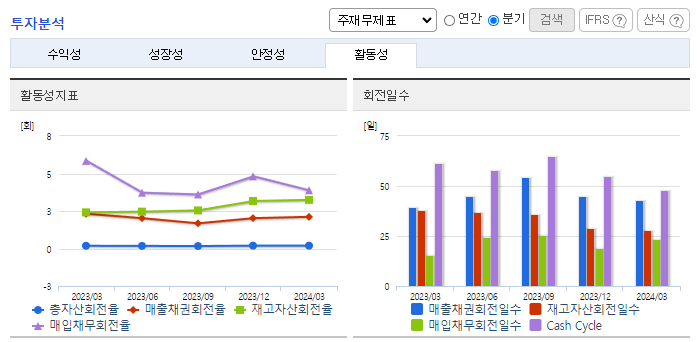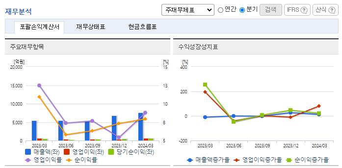 -2023년 12월 전년동기 대비 연결기준 매출액은 4% 증가, 영업이익은 4.1% 증가, 당기순이익은 42.3% 증가. 인도네시아 수출사업의 매출 인식 시점 연기에 따른 수출매출 감소에도 불구하고, 대규모 연구개발 사업의 매출인식 시점 도래와 신규 연구개발사업이 큰 폭의 개발매출 증가로 이어짐. 신규수주사업 선수금 증가로 인한 현금성자산 및 선급금 증가로 자산총액이 증가하였으며, 이 중 유동자산이 전년대비 7,129억 원 증가함.