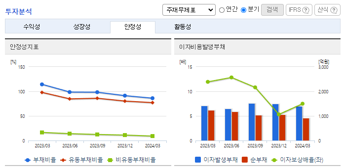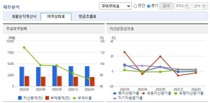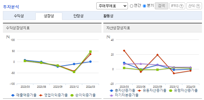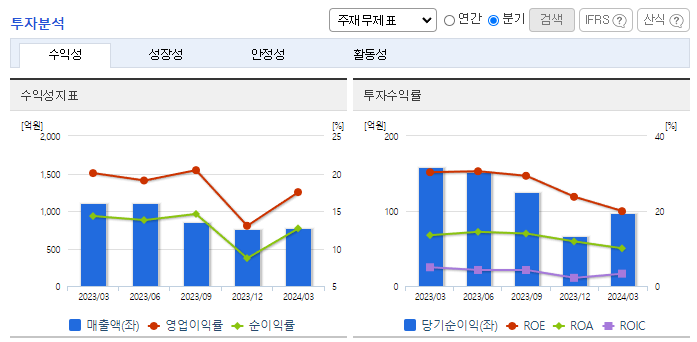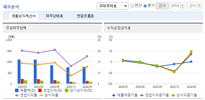 -2024년 3월 전년동기 대비 별도기준 매출액은 30.8% 감소, 영업이익은 39.5% 감소, 당기순이익은 38.7% 감소. 건설경기 불황으로 강관업계 시장 또한 난항을 겪으며 동사의 강재리스, 제품, 상품, 임가공, 공사 매출액이 모두 전년동기 대비 감소하였음. 대형 건설 프로젝트를 수주하기 위하여 고객사의 상황을 면밀하게 모니터링하는 것과 동시에 고객사의 변화된 기술 동향을 선제적으로 파악하고 있음.