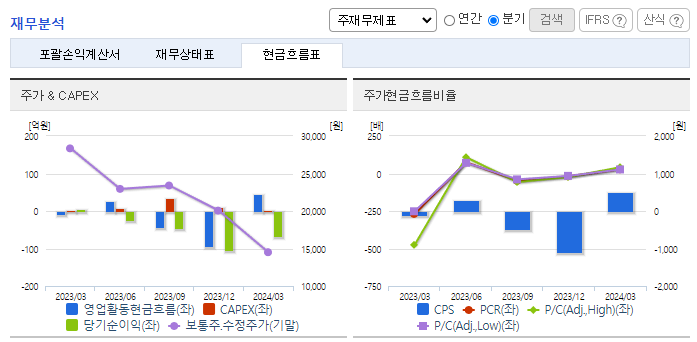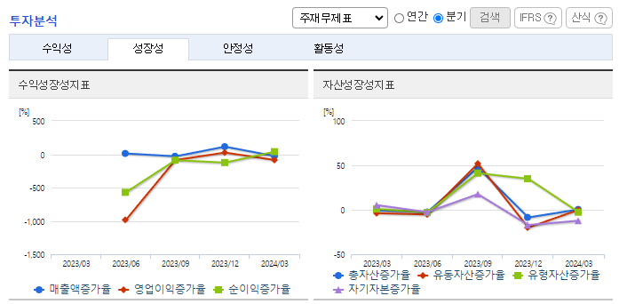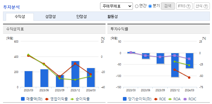 -2024년 3월 전년동기 대비 연결기준 매출액은 20.4% 증가, 영업이익 적자전환, 당기순이익 적자전환. 캐치! 티니핑, 미니특공대, 메탈카드봇, 룰루팝 등 제품 매출이 증가하였지만 상품, 제품, 콘텐츠 제작의 등의 매출원가 또한 증가하고 각종 비용 상승으로 영업이익이 적자전환 되었음. 향후 매출처 다변화, 플랫폼 사업, 공간 사업 등을 바탕으로 4분기에 집중되는 매출의 계절성을 다소 완화시킬 계획임.