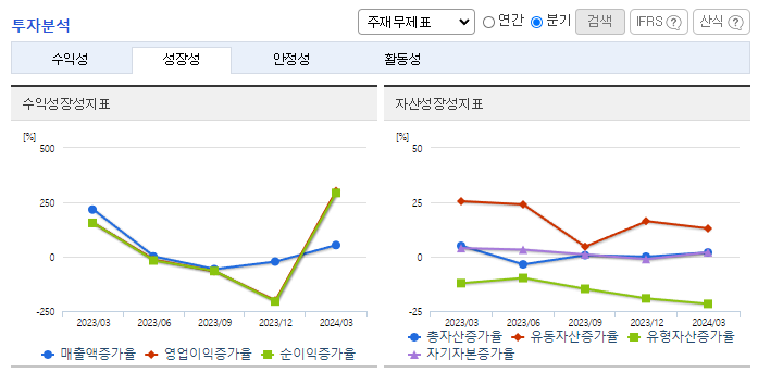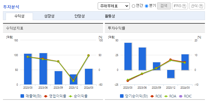 -2024년 3월 전년동기 대비 별도기준, 영업이익은 42.8% 감소, 당기순이익은 42.8% 감소. 최근 3년간 벤처투자회사 수는 197개에서 246개로 24.9% 증가하였으나, 증가폭은 감소하고 있는 상황이며, 신규 벤처펀드 결성액은 31.3% 감소하여, 벤처투자 시장의 어려움으로 이익 감소를 보여주고 있음. 투자 효율을 높이고 펀드 성과 향상을 꾀함으로써 벤처투자 시장 내에서 지속적으로 경쟁력을 확보하기 위해 노력 중임.