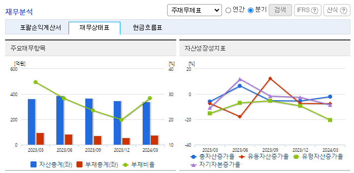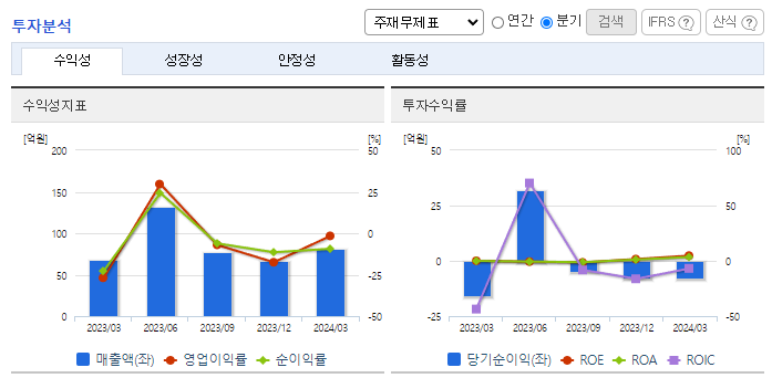 -2024년 3월 전년동기 대비 연결기준 매출액은 19.2% 증가, 영업손실은 92.9% 감소, 당기순손실은 50.9% 감소. 전 사업 부문 고른 성장세 및 판관비 감소에 영향으로 영업손실 및 순손실의 적자 폭은 크게 축소됨. 개정 신용정보법에 맞추어 개인CB 영역에 대한 사업 확장성 및 범용성을 갖추고 사업영역을 확장하여 진정한 종합신용정보사로 거듭나기 위해 노력 중임.