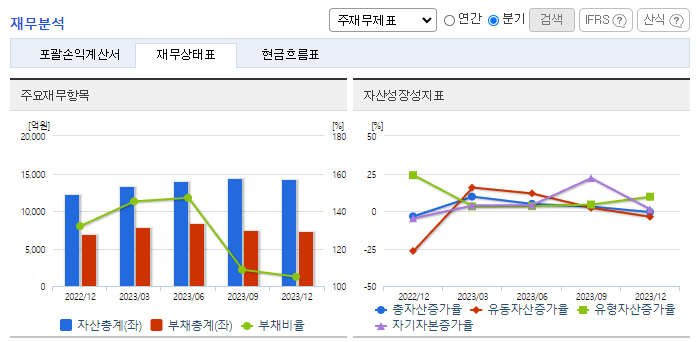 -2023년 12월 전년동기 대비 연결기준 매출액은 33.8% 증가, 영업이익은 5.1% 증가, 당기순이익은 158.3% 증가. 매출액은 해상풍력, 특수선 등 매출증대로 전기대비 2,340억 원(33.8%) 증가하여 연간 최대 매출인 9,258억 원을 기록하였음. 2023년도 수주실적은 해상풍력을 포함한 플랜트사업부문 812억, 후육강관사업부문 322억, 수리개조사업부문 141억 등 총 1,275억 원임.