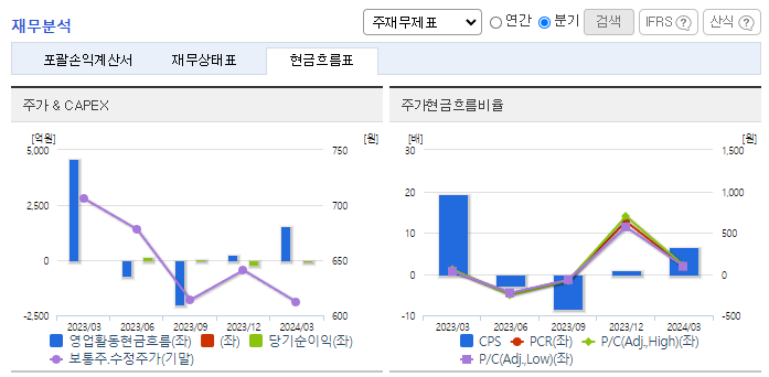 -2024년 1분기 연결기준 영업이익은 전년동기 대비 적자전환, 당기순이익 적자전환함. 부동산 프로젝트파이낸싱 관련 대손충당금을 보수적으로 추가 설정하여 영업이익과 당기순이익이 적자로 전환됨. 3월 말 기준 대손충당금은 934억 원으로 전년말보다 152억 원가량 늘었음. IB을 제외한 사업부문에서도 적자를 기록함. 위탁매매 부문에서 108억 원, 고유자금을 운용하는 자기 매매 부문에서 21억 원의 손실을 기록함. 저축은행도 37억 원 적자임.