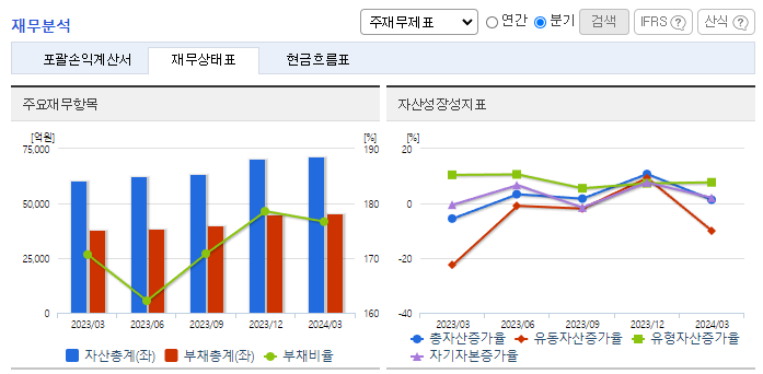 -2023년 12월 전년동기 대비 연결기준 매출액은 34.2% 감소, 영업이익 적자전환, 당기순손실은 303.1% 증가. 대내외 경영 환경이 악화되며 매출이 감소했으며 영업손익은 적자 전환되었음. 2024년 역시 지정학적 갈등 고조 등 글로벌 경영환경 불확실성으로 전년 대비 변동성은 더욱 커질 것으로 예상됨. 동사는 2차 전지, 반도체, 친환경 중심의 사업구조를 확립하고, 미래 성장에 투자를 집중할 예정임.
